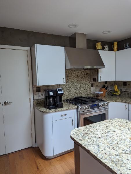 The custom butler’s pantry is a standout feature of this remodel. Designed with both beauty and practicality in mind, it includes ample storage, a double wall oven, and a prep area that complements the open kitchen. The deep blue cabinetry adds a sophisticated contrast, making it both a functional and stylish addition to the home.